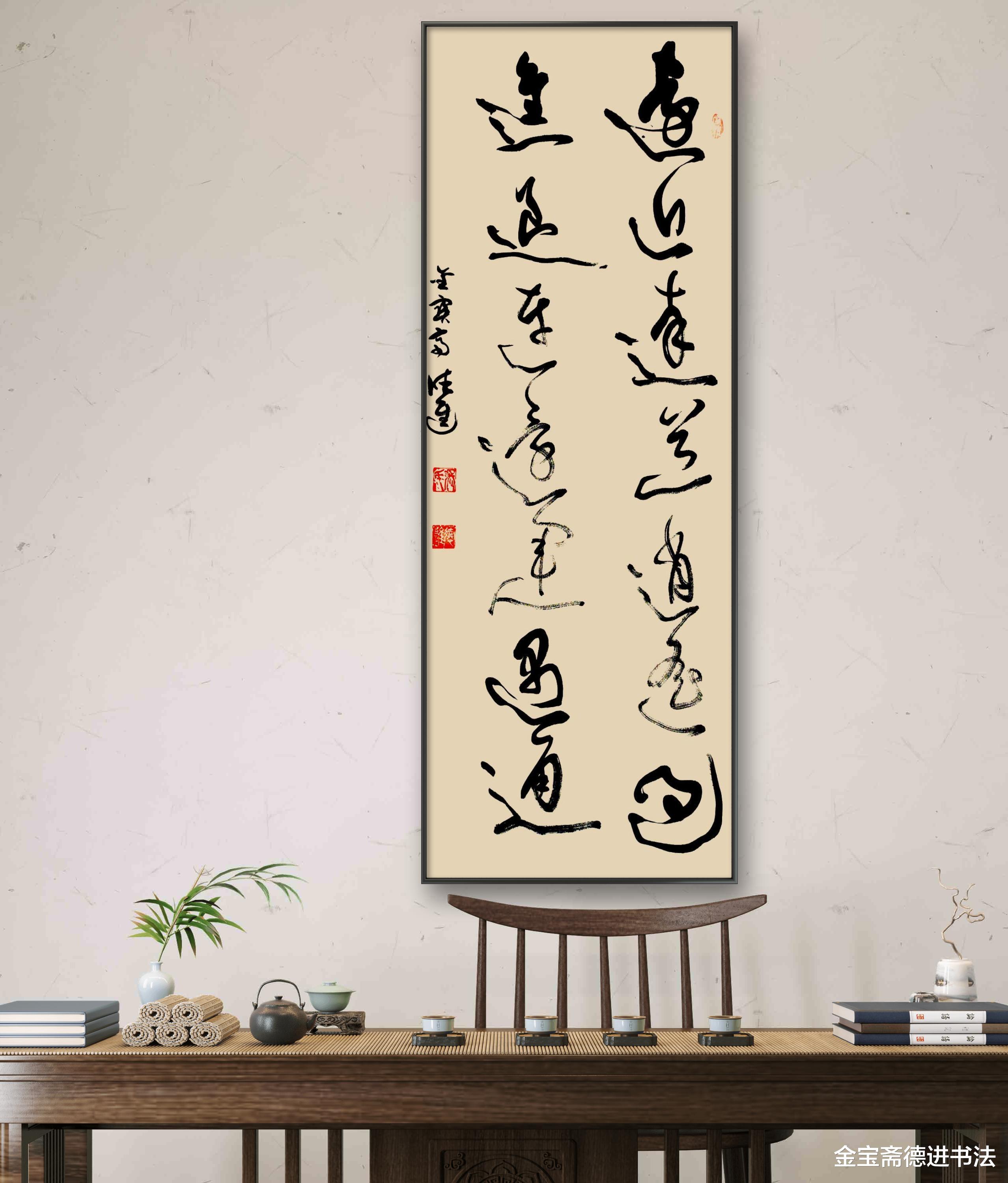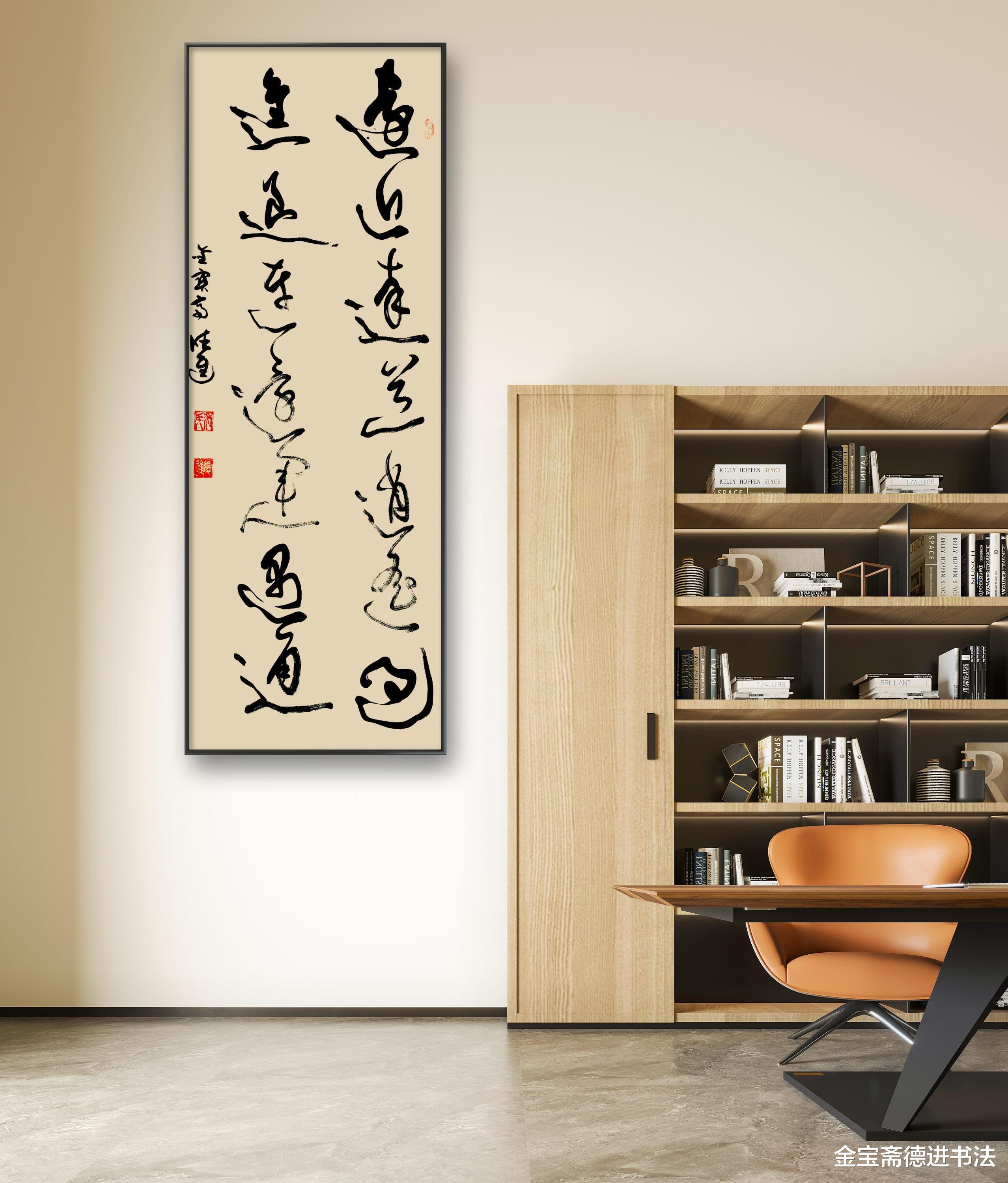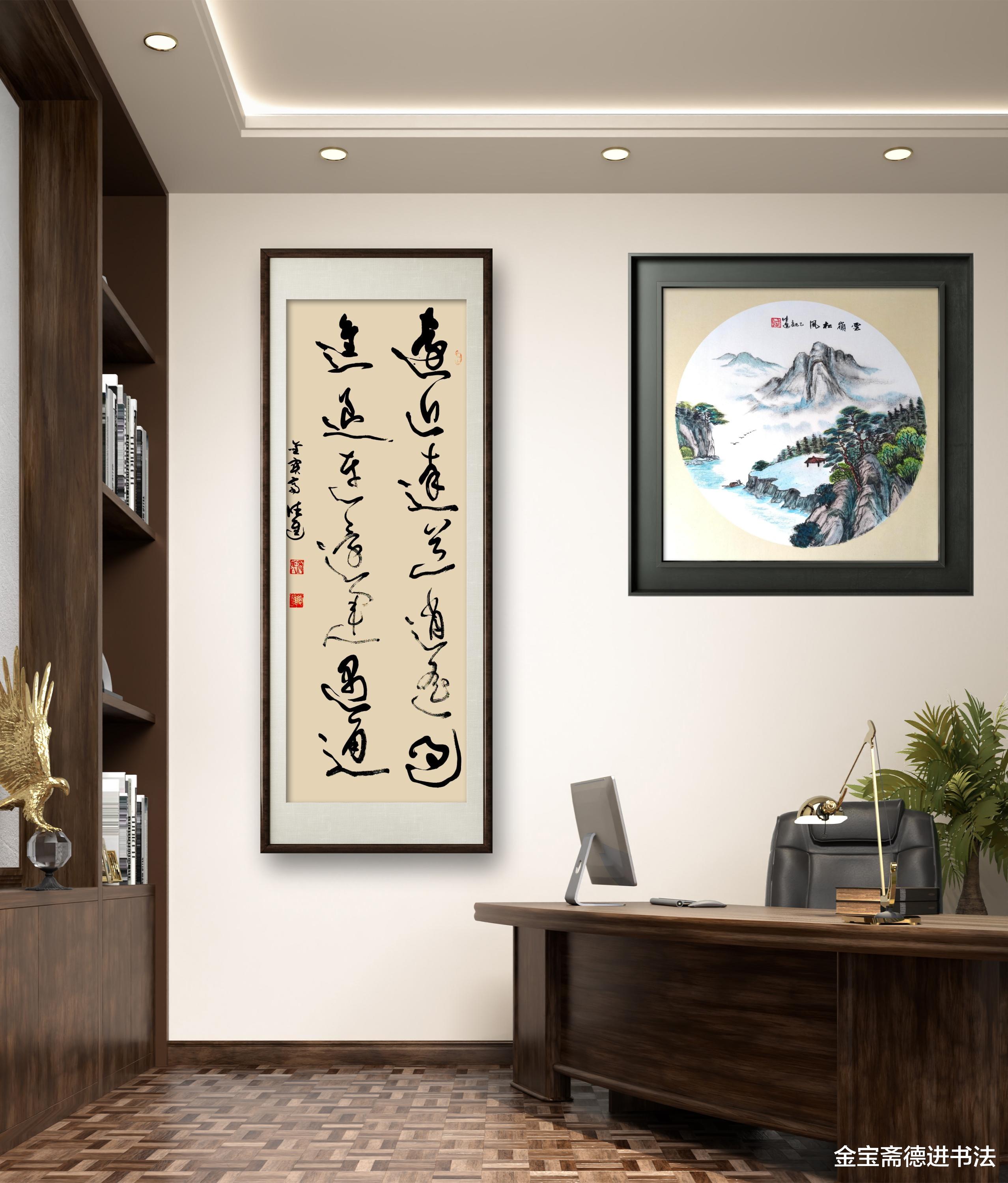 办公室内,草书刚劲笔力暗合职场锐气。“进退连还”提醒把握决策尺度,“运遇通”传递积极力量。它以书法提升空间格调,更激励从业者:以“逍遥”应起伏,以“达道”守方向,让每一次“进退”都铺垫成功。