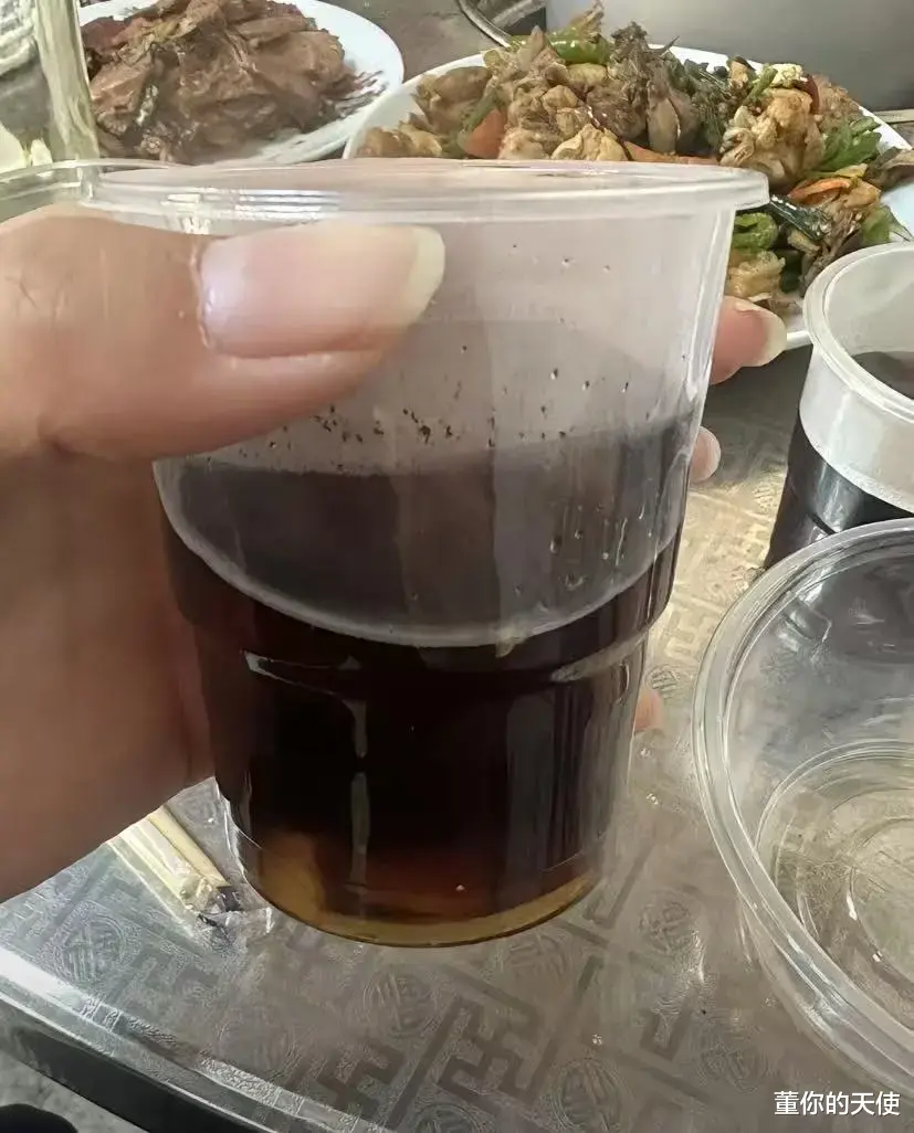 随后,把便把可乐倒入一次性杯子里,让我们也尝一口!