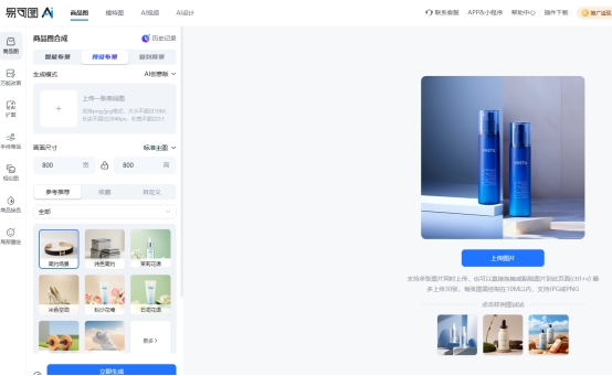 不少商家在使用电商设计工具时,会关心操作是否复杂。以易可图为例,AI商品图功能的流程非常简单,可以说大多数步骤都可以通过点击完成。