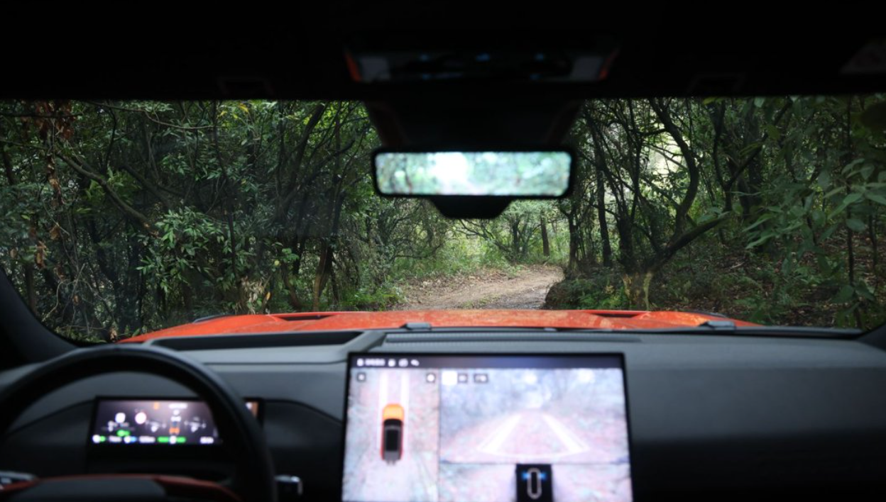 这次驾驶智趣烈马穿越丛林窄路,智能越野配置带来不少便利。开启越野模式后,70 英寸 AR-HUD 直接把俯仰角、侧倾角投射到前方,我不用低头就能掌握车辆状态。越野 360 系统同步显示四周的路况一眼就能看清。遇到坑洼路段时,透明底盘功能发挥了大作用,底盘下方的石头和坑洞都清晰可见,彻底消除了视线盲区。这些功能相互配合,像有个向导在身边指引。