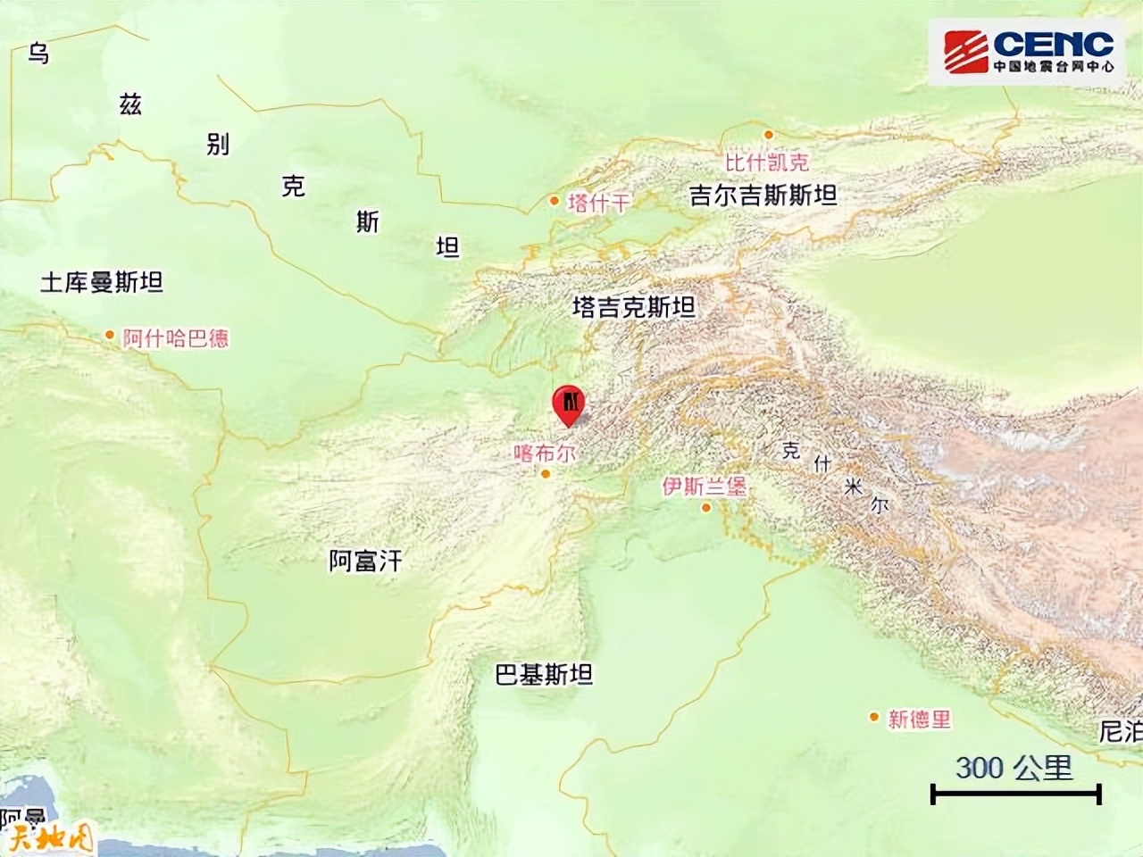 据中国地震台网正式测定,2月20日21时9分在阿富汗发生5.5级地震,震源深度80公里,震中位于北纬35.65度,东经69.80度,距我国边境线最近约448公里。