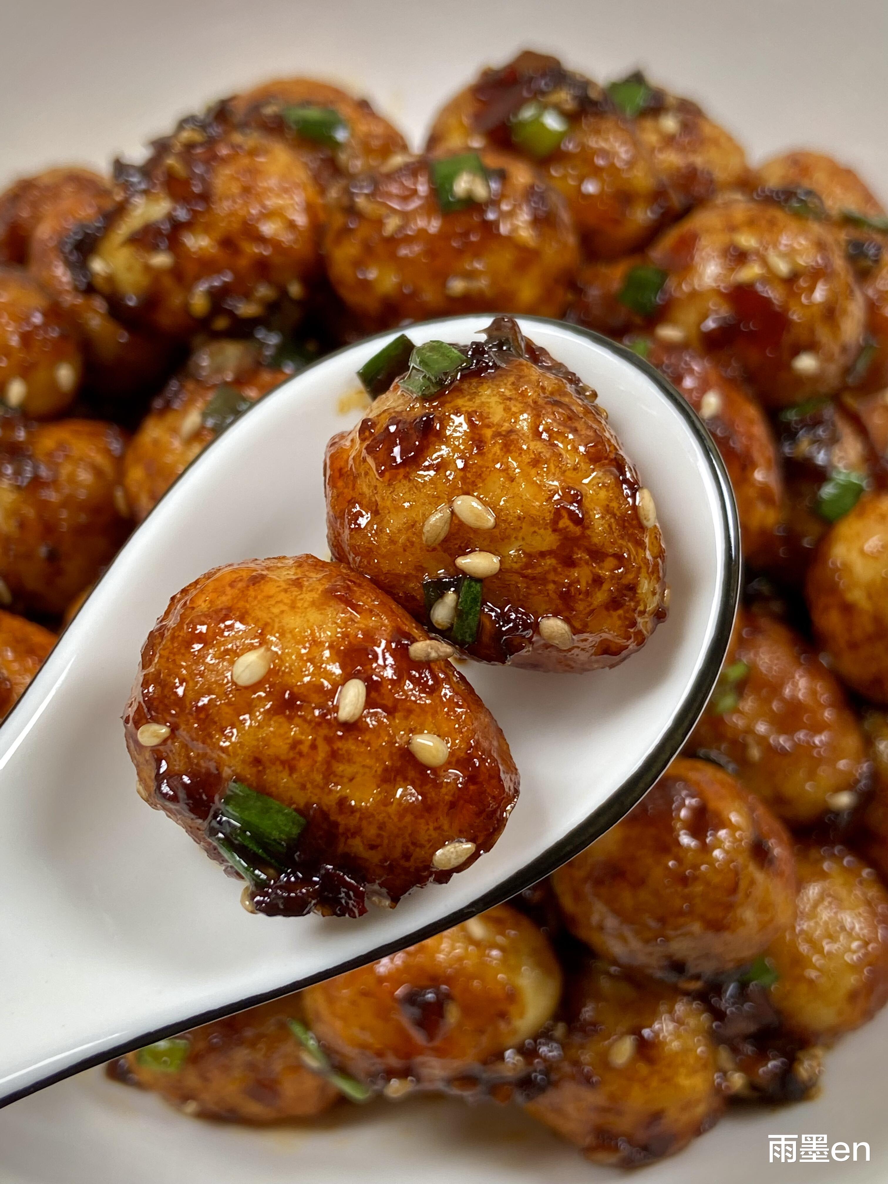 这道菜的背后,藏着妈妈的味道。小时候物资不算丰富,鹌鹑蛋算是“稀罕物”,只有逢年过节妈妈才会做。记得第一次吃时,我拿着小勺子,一口一个吃得停不下来,妈妈笑着说我“像只小馋猫”,还把最后几颗都夹给了我。后来自己学着做,试过炸蛋炸糊、酱汁太咸,慢慢摸索出适合自家口味的做法,现在每次做这道菜,都会想起妈妈的笑容,想起童年的美好时光。