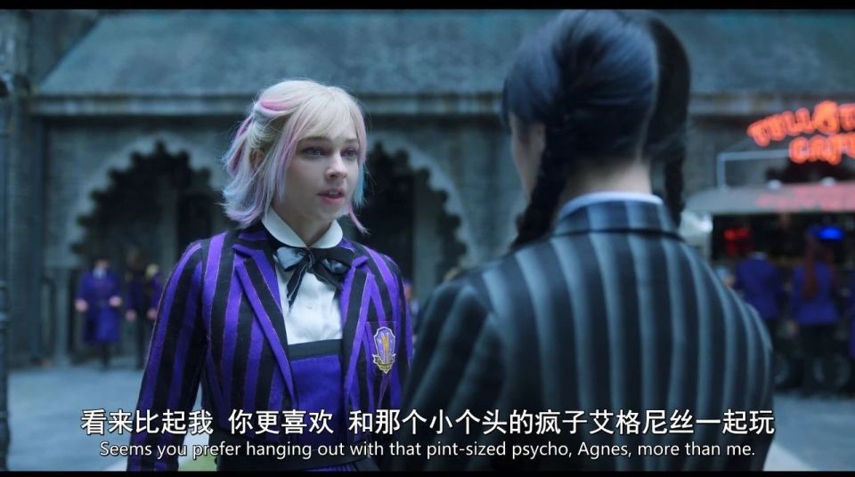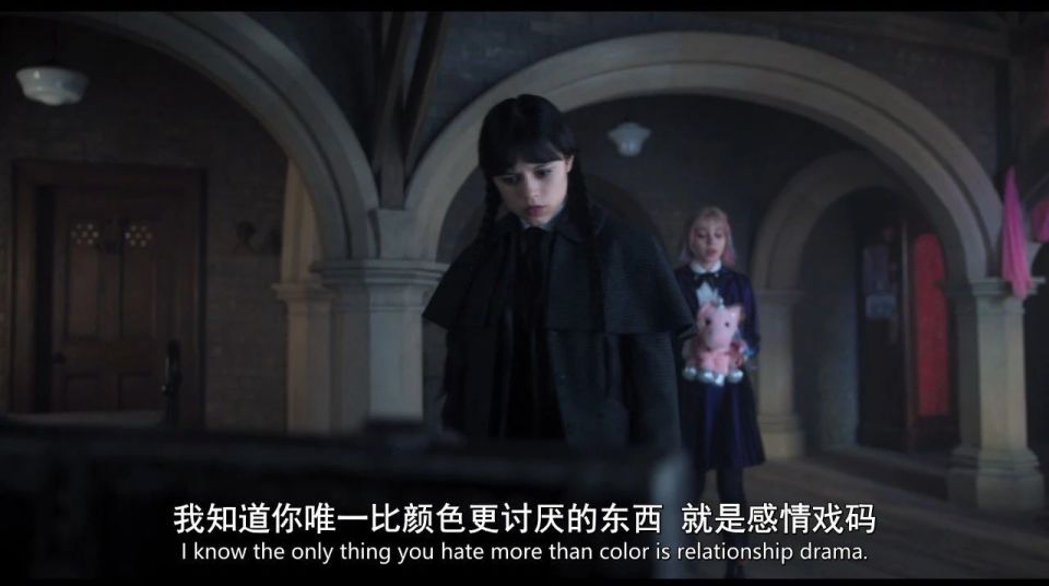 虽然衍生自《亚当斯一家》IP,但《星期三》更像是一部“暗黑版《哈利·波特》”,剧中收容异类的奈弗莫尔学院,也像是霍格沃茨和泽维尔天才少年学院的结合体,它是一部用凶案和奇幻元素包装起来的校园剧。