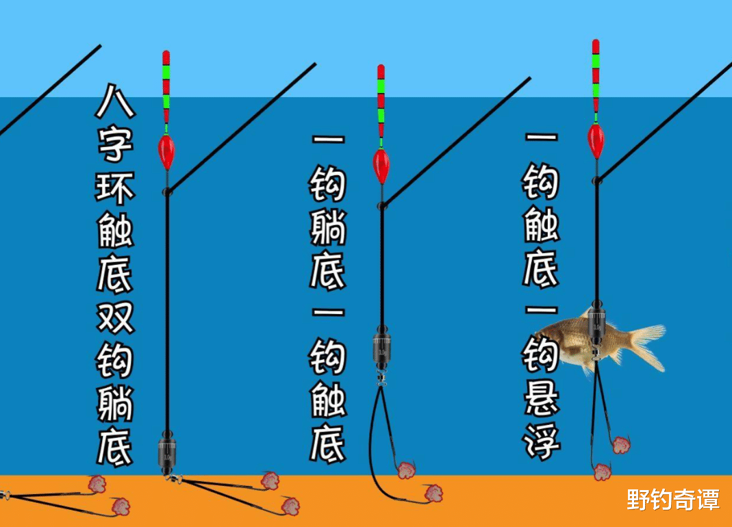一钩躺底一钩触底则像是阴阳平衡的状态。下钩完全躺底,上钩轻轻触及水底。这种状态介于灵敏与迟钝之间,被许多钓友称为“不灵不钝”。
