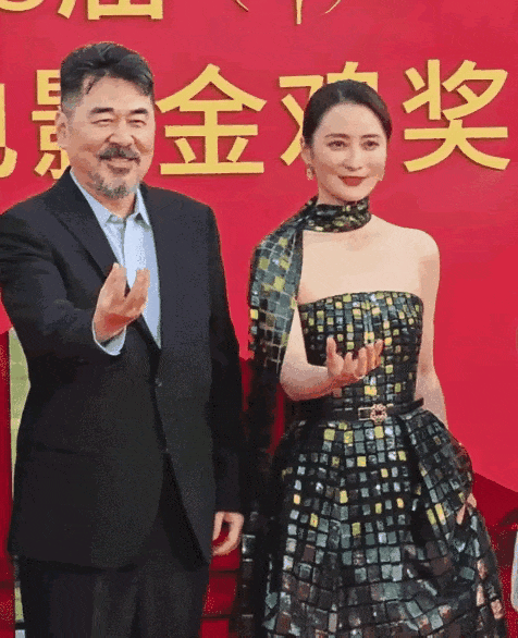 如果说这是静止的图,免不了精修,但前不久落幕的金鸡奖上,她一袭马赛克抹胸裙,站在老公陈建斌旁边,她的状态依然能打,十年如一日的冻龄,优雅。