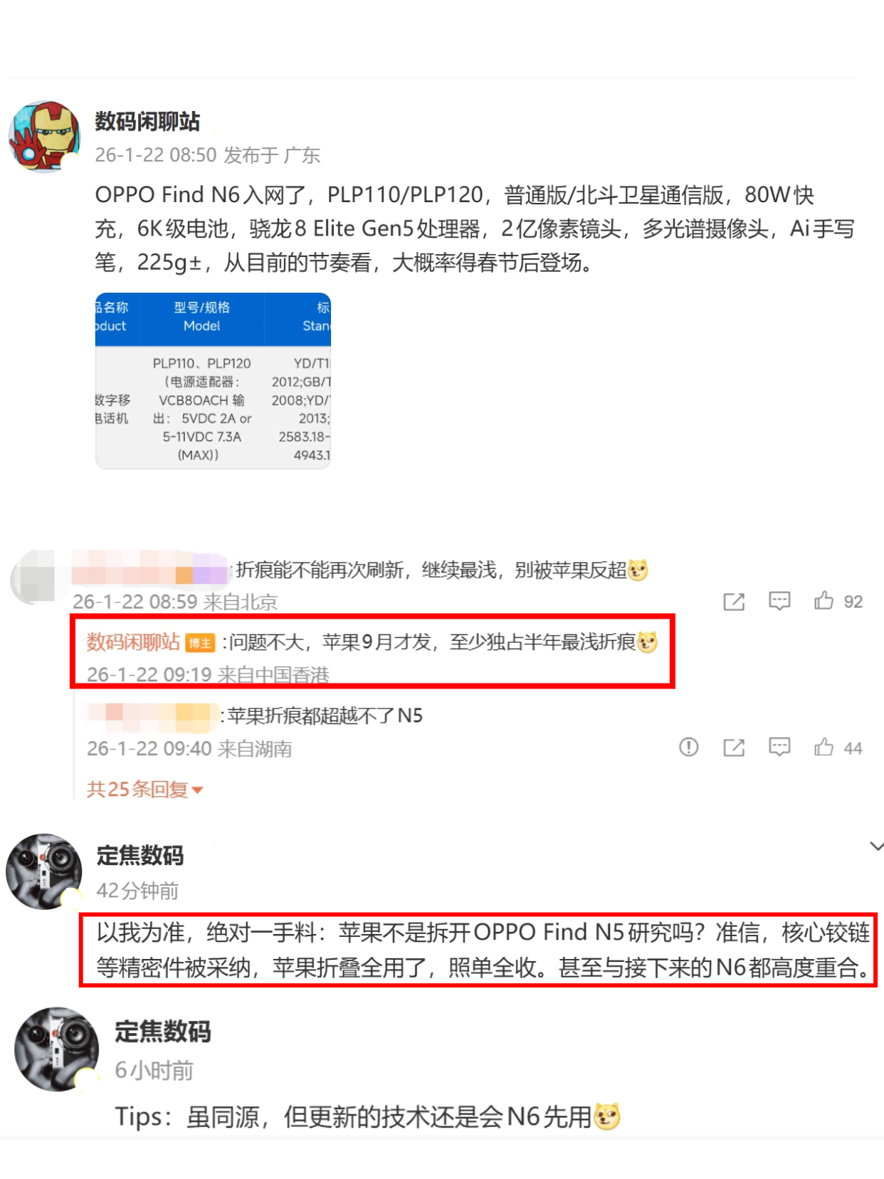 而且苹果折叠屏用的其实也是国产技术!有博主爆料,iPhone Fold关键的屏幕、铰链等核心部件,都用的OPPO Find N6同款!