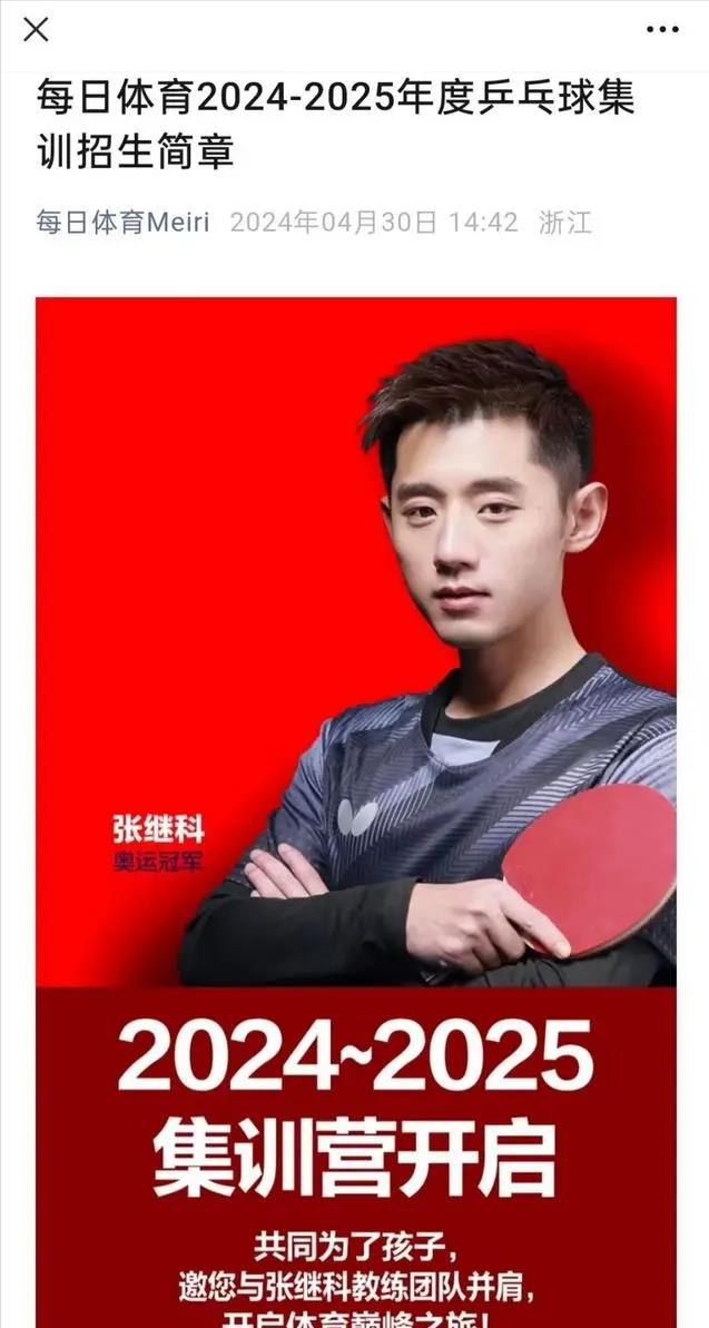 《张继科开新账号直播,做乒乓教学:高级课程班学生30人,学费为每月9800元》海峡都市报2024-4-3发布