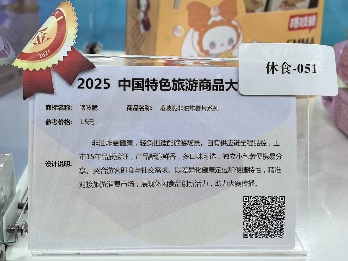 10月31日,2025中国特色旅游商品大赛颁奖典礼上,洽洽“喀吱脆非油炸薯片系列”荣获金奖。图/洽洽发布公众号