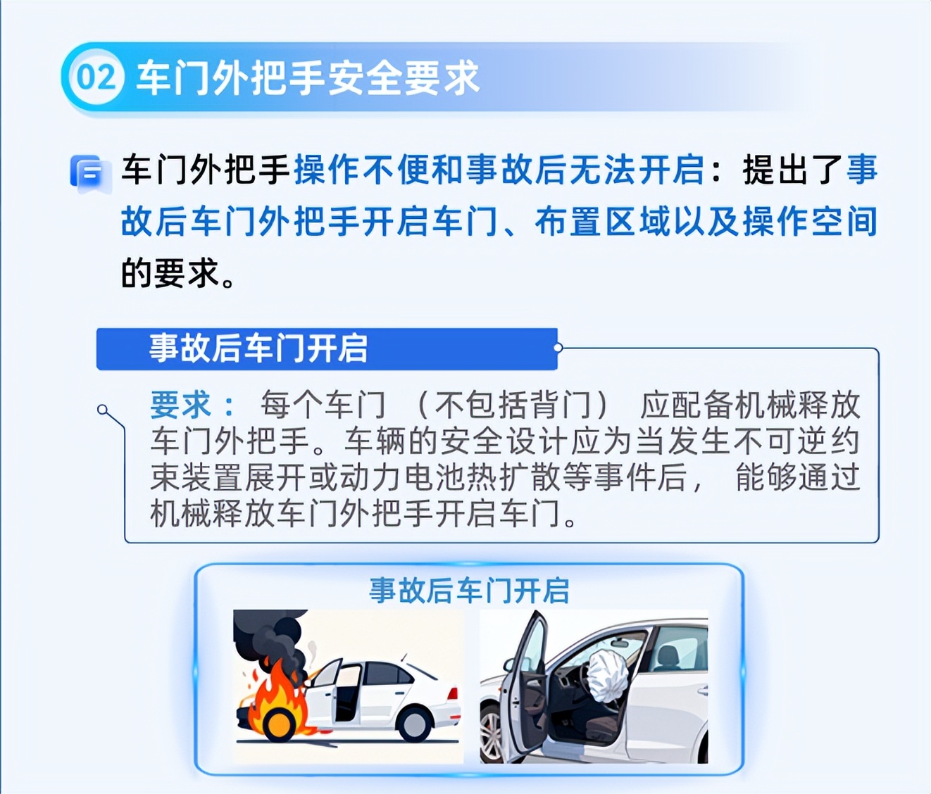 电池新国标 GB38031-2025 即将落地,对电池安全提出 “不起火、不爆炸” 的更高要求,门把手新规也将补齐应急安全短板,这是行业从“技术创新”向“安全本质”的回归。我们也期待车企在未来的设计中,能进一步优化应急操作的便捷性和标识性,让安全设计真正“落地”,让每一位用户都能熟知、会用!