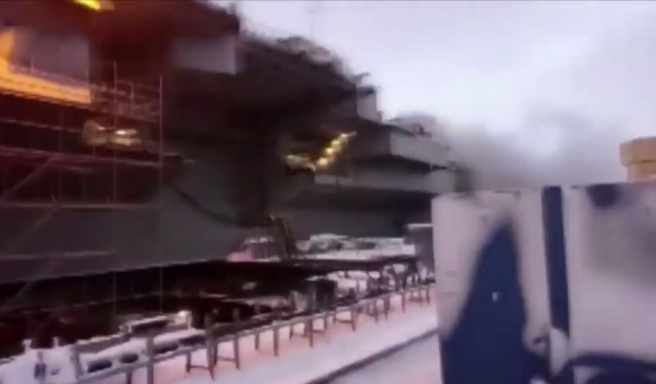 随即,这艘航母被移送至第35修船厂继续修理。2019年12月12日,在维修第一动力舱时,焊接作业时冒出的火花,引燃舱内残留油垢与易燃物,引发熊熊烈焰。