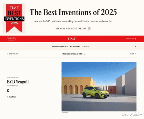比亚迪海鸥登上美国《时代周刊》2025年度最佳发明榜单