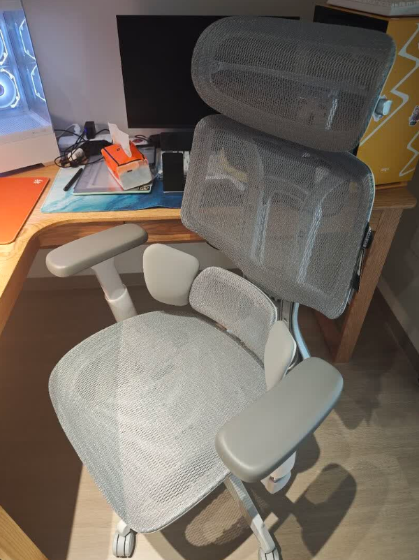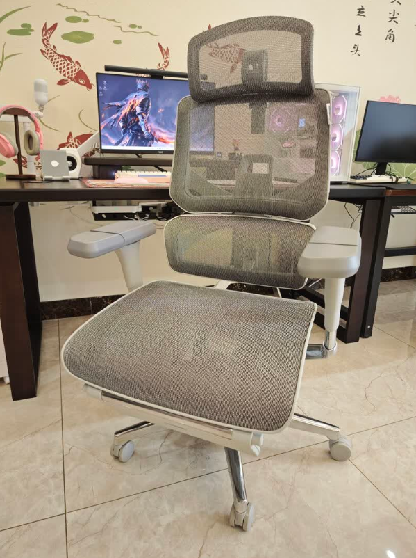 舒适度:整体舒适度偏柔和放松,网布透气不闷,坐感软且包裹感强,久坐疲劳感不明显。小缺点是想把靠背完全后仰需要用腿发力蹬地,有点费劲;大体重的人坐久了,网布可能会有点变松。