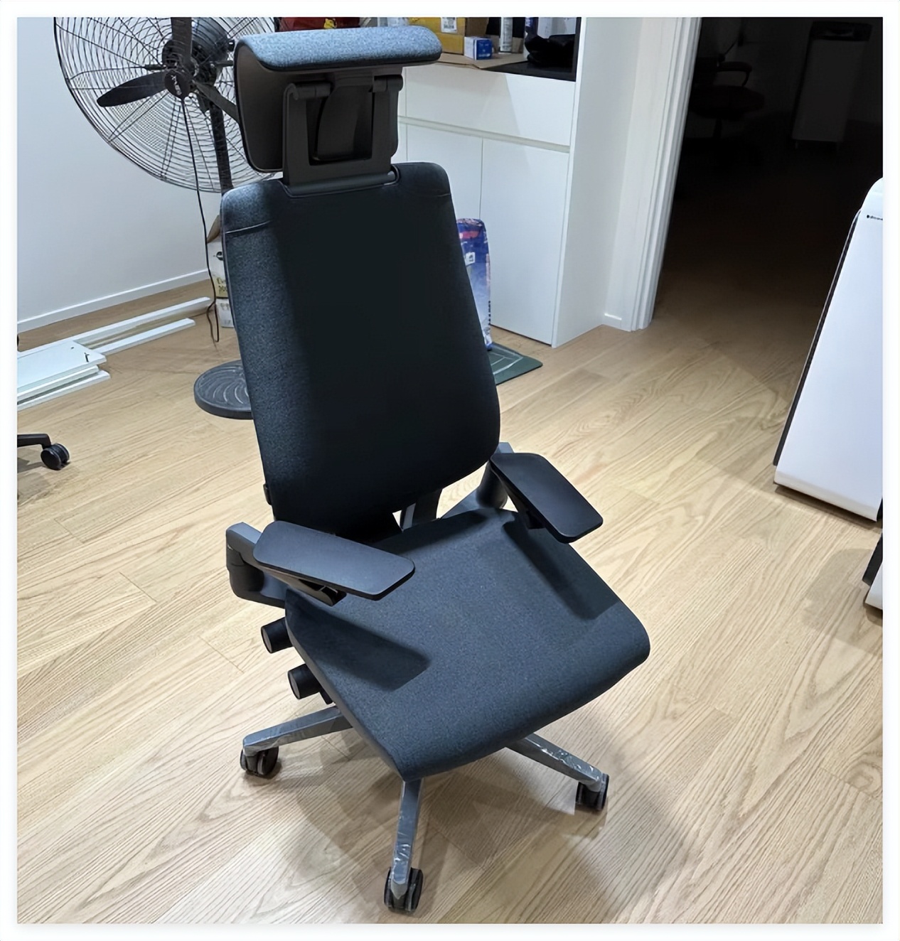 调节能力:作为旗舰型号,Fit2的调节覆盖得很全面。腰靠本身是自动追腰,不需要频繁调;头枕支持3D多向调节,能很好贴合颈椎曲线;6D联动扶手在高度、前后、左右、旋转等方向都有调节空间,不管是打字、靠椅子看屏幕,手臂都能找到自然受力的位置。145°无极后仰加隐藏式伸缩腿托,让办公和午休之间切换非常顺畅。调节逻辑不复杂,基本都是“调一次就不用管”,对新手也很友好。