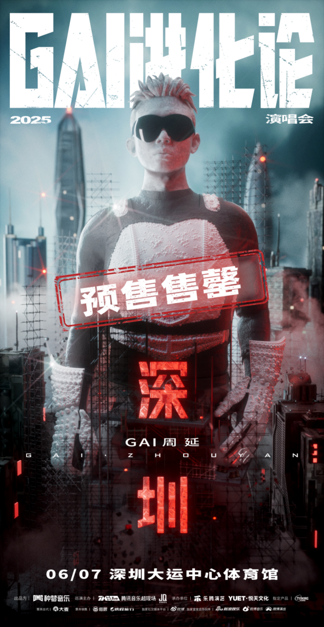 「《GAI进化论》世界巡回演唱会」2024年重庆、北京、南京、广州,成都,五站座无虚席,口碑/热度爆棚。歌迷有口皆碑“GAI进化论就是年度最爽的演唱会”“GAI哥演唱会戒断反应强烈,做梦都在唱歌”“有诚意的演唱会”“是我本年度看的演唱会最佳!声音!体力!兄弟伙!大合唱!舞美!视觉!现场氛围!”“现场真是又好蹦又好哭”“中文说唱演唱会天花板”“永远可以相信GAI哥的现场”……2025年《GAI进化论》在上海、武汉再掀热潮,6月7日即将登陆深圳!有网友表示“GAI上歌手了,进化论的票更难抢了!”