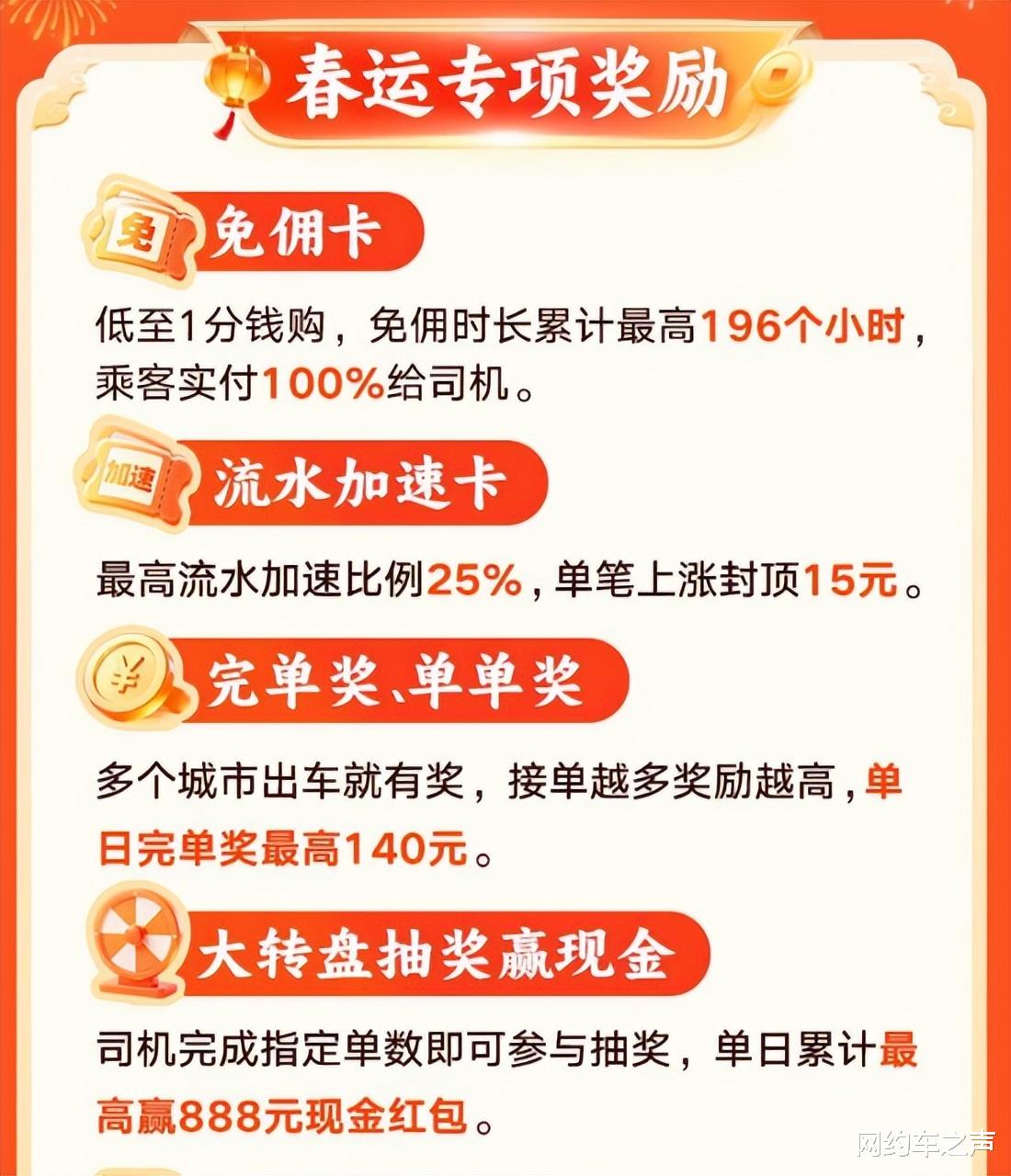 每年的春运奖励都大差不差,只不过今年的似乎更有诚意,多种福利形式覆盖了全部接单场景,几乎完美命中了司机们的接单需求。