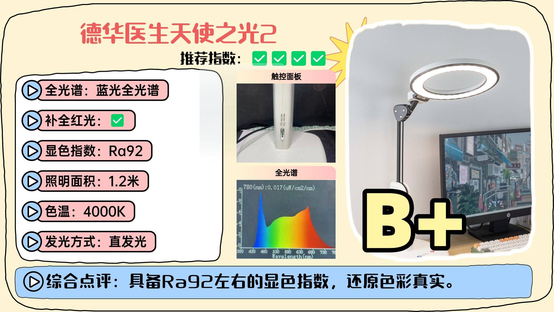 护眼效果:爱德华是一款内置144颗高品质灯珠的护眼台灯,并且在光源上,还独特的添加了红光,整体的光谱完整,不过因为是蓝光激发全光谱,实际的蓝光会比较高。