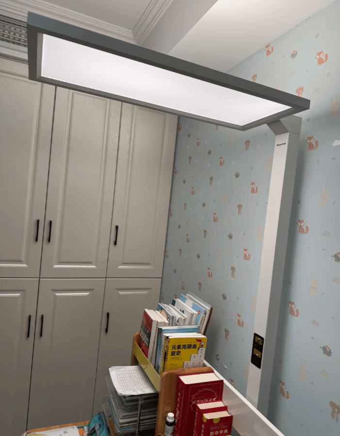 护眼大路灯的核心原理,是通过高位大面积发光+专业光学结构,把光线均匀地铺满整个学习空间。
