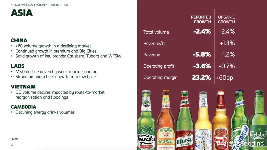 目前,嘉士伯通过重庆啤酒这一上市公司运营其中国业务。根据重庆啤酒昨日发布的业绩预告,2025年度公司实现营业总收入147.22亿元,同比增长0.53%;净利润为12.31亿元,同比增长10.43%。