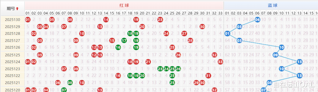 回顾130期红球(红球:01、05、08、14、19、23,蓝球:06),我们可以发现几个显著特点: