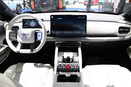 环抱式座舱设计饱满且立体,与硬派外观相辅相成,延续了家族化的四辐式多功能方向盘、升降战车挡杆、一排“豹爪”式水晶按键等经典设计元素。