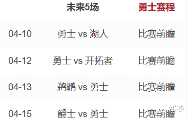 4月8日,勇士客场战胜爵士后,球队目前稳定在西部第十位,随着湖人主场不敌森林狼,勇士与湖人之间仅有1.5胜场,两队将在4月10日迎来较量,这场卡位赛也影响着西部最终排名。