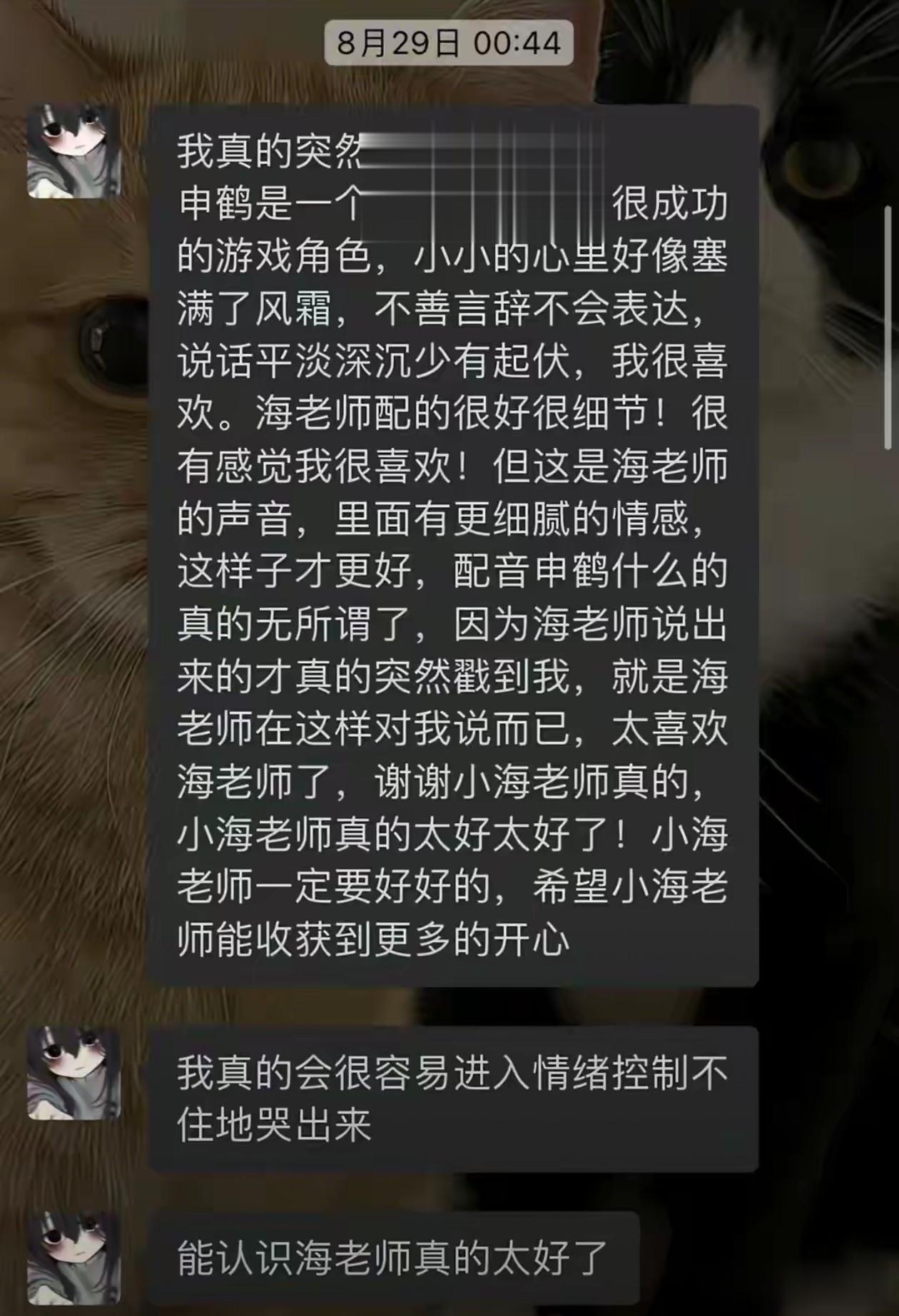 深夜直播间的最后时光鹤归的网名源自《原神》角色申鹤,他经常出现在主播小海老师的直播间。从曝光的聊天记录看,他们常常聊到深夜一两点。这种熬夜习惯,或许早已为他的健康埋下隐患。