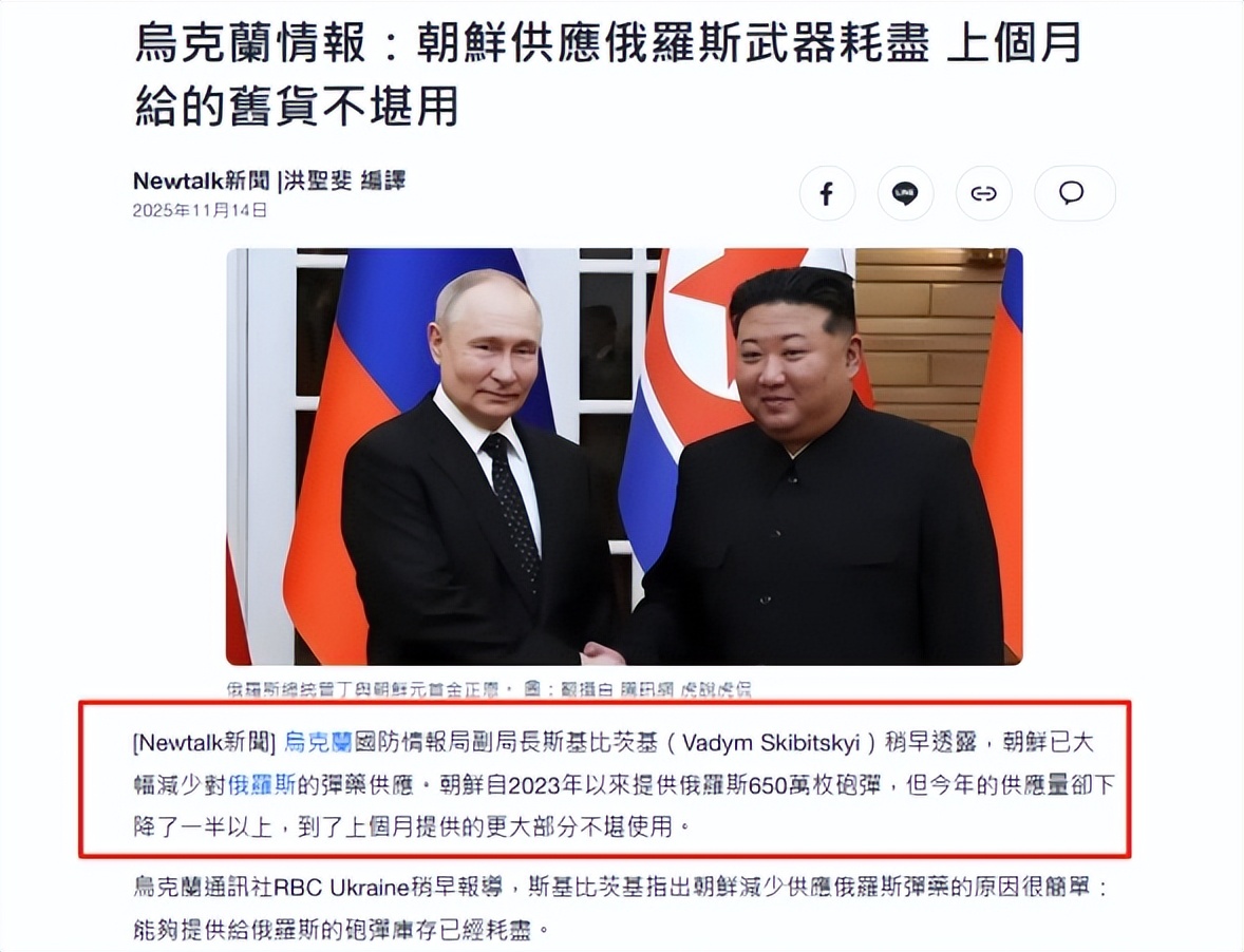 乌克兰的情报部门11月14称,近期从朝鲜运来的部分弹药看起来并不新,很多都是存放了若干年的库存物资,据说要先运回去重新整修一番,才可以用于前线作战。