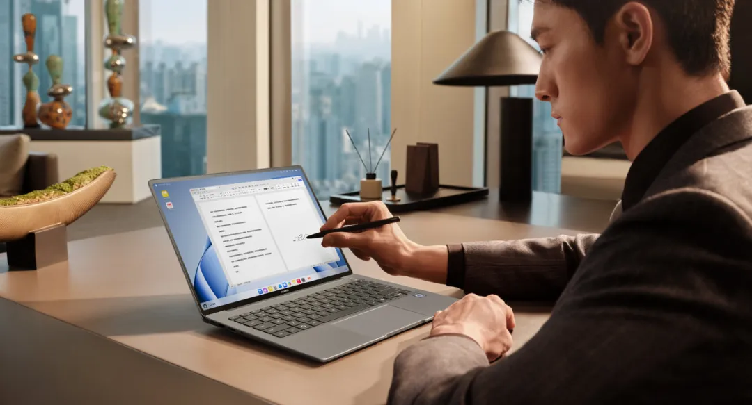 对于对信息安全有极高要求、有移动办公/跨端协同需求,或希望引领数字化转型的先锋单位,可以选择华为擎云 HM740(HarmonyOS V1.0)。其搭载鸿蒙电脑专业版,支持企业零感部署,通过华为HEM平台快速部署终端权限及预制应用,各级单位企业员工领取后开机即用;同时,系统级AI能力为政企用户高效办公提供助力,其“小艺深度研究”功能可在20分钟内生成论文级报告,“小艺慧记”实现会议实时转写与结构化纪要生成,将AI能力真正融入办公流程;华为擎云 HM740还支持升级鸿蒙电脑企业版,独有的企业数字双空间通过多重加密技术构建企业空间与个人空间两个独立区域,员工仅需四指滑动即可实现无缝切换,既守住安全红线,又不牺牲效率底线。硬件方面,华为擎云 HM740配备Wi-Fi 7与星闪连接技术,21小时超长续航满足全天候办公需求。