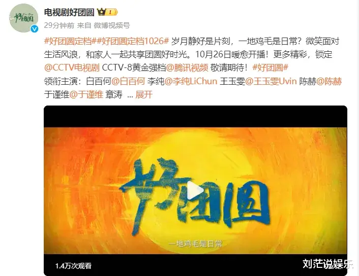 就在大家还对《人民警察》的结局念念不忘的时候,10 月 26 日,一部新剧《好团圆》闪亮登场了,而且还是在央视八套黄金档播出,鹅厂也同步跟播。这消息一出来,好多观众都特别期待,想着赶紧看看这部新剧有啥不一样。