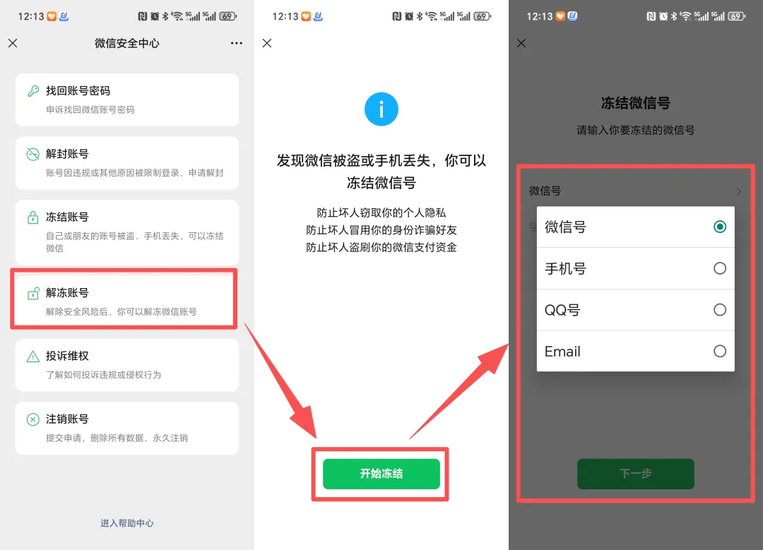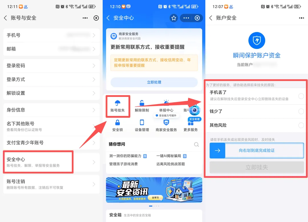 不管是使用备用机还是找身边的朋友借手机,一定要记得先把支付账户冻结掉,避免资金被盗刷、转移!