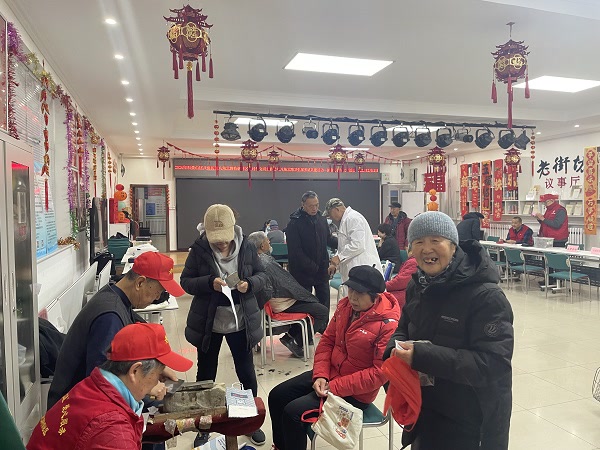 与此同时,社区服务站志愿者们同步开展健康便民服务,为现场居民免费测量血压、血糖,细致解答健康疑问,提醒大家冬季注意养生保健,用专业服务守护居民身体健康,为平安过年保驾护航。