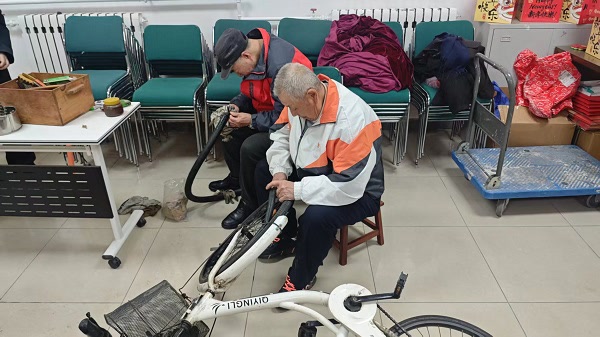 活动现场暖意融融、热闹非凡,社区退休老师傅们化身志愿服务主力军,凭借多年经验和娴熟手艺,为居民们提供实打实的便民服务。