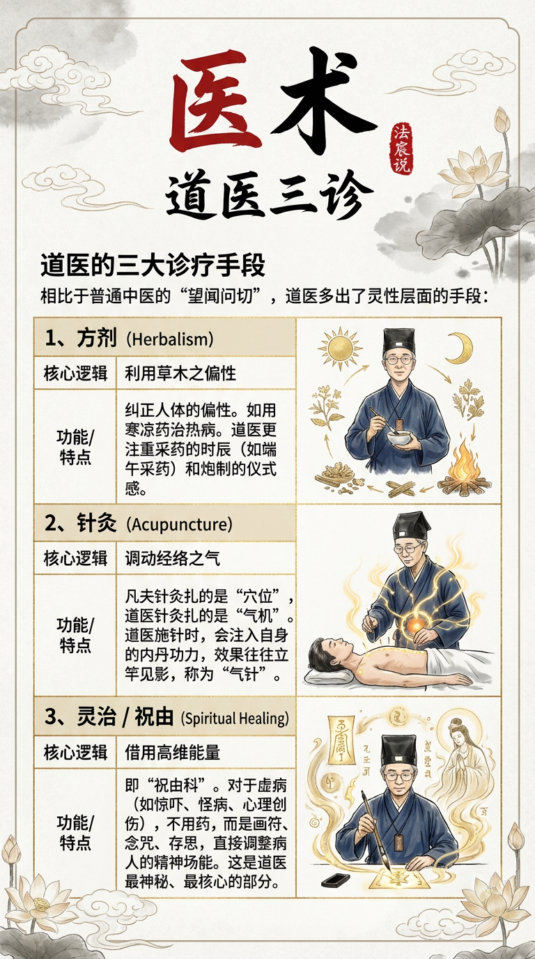 学院介绍:这可不仅是熬苦药汤子!咱们东方道家五术里的“治疗术”,讲究的是整体观。利用方剂、针灸、灵治(心理疗法)等方法,调节人体的阴阳平衡。它告诉你,身体是一个小宇宙,要顺应四季变化来生活。
