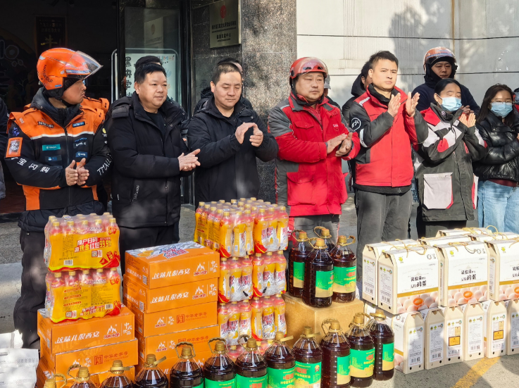 活动当天,临潼区骊山美术馆内暖意融融,工作人员将精心准备的米面油、保暖用品等慰问品一一送到新就业群体代表手中。