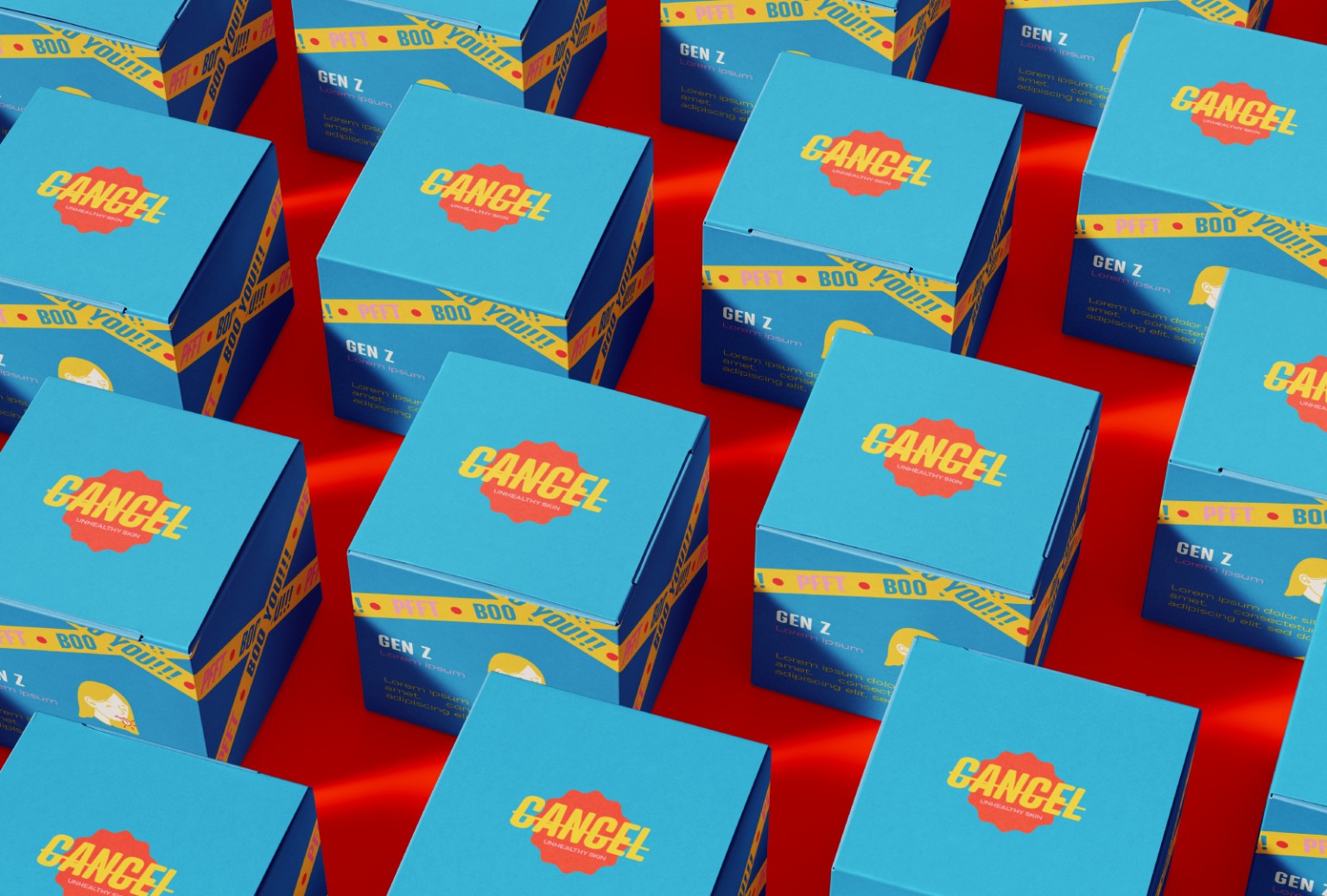 CANCEL的包装设计堪称一场视觉盛宴。其以高饱和度的蓝色为主色调,瞬间抓住消费者眼球,在货架上极具辨识度。包装上醒目的黄色警示带图案环绕,搭配上俏皮文字,不仅增添了活泼感,还传递出一种轻松、有趣的态度。