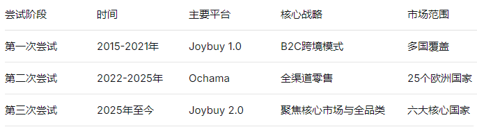 2015年,京东曾推出Joybuy1.0版本,试图将中国的电商模式复制到欧洲。当时的主要问题是模式错位——京东主营的3C数码产品难以复制同行通过工厂直销、直邮包裹免税通道等方式打造的低价优势。