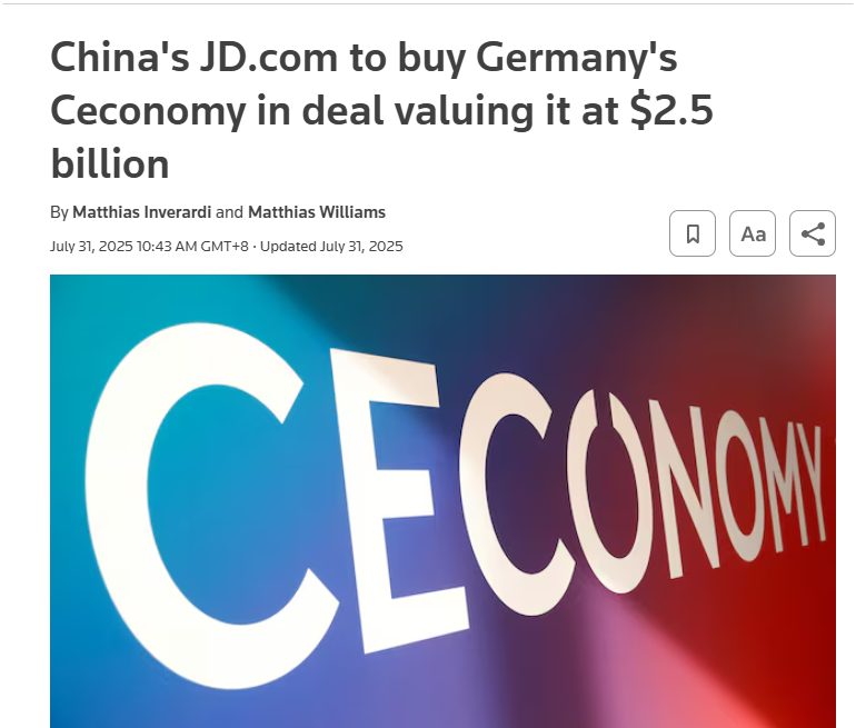 京东布局欧洲的宏大战略,正通过一次关键收购加速落地。公司已将欧洲领先的消费电子零售集团Ceconomy(旗下运营MediaMarkt和Saturn两大连锁品牌)锁定为战略收购目标。