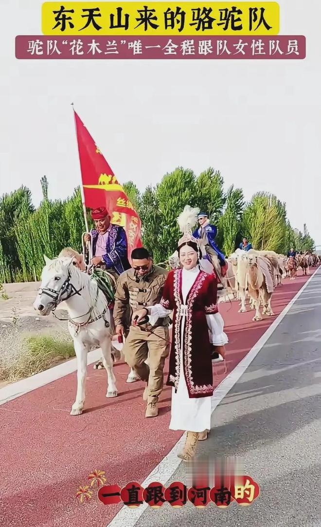 说起董小姐的这场徒步之旅,本身就足够传奇。她是新疆 “东天山来的骆驼队” 里唯一一位全程跟队的女队员,被队友们称作驼队里的 “花木兰”。这支驼队来头不小,队员由多个民族组成,牵着骆驼重走古丝路,从新疆哈密出发,目的地正是河南洛阳,全程近 3000 公里的路程,董小姐一步不落,走了整整 139 天。