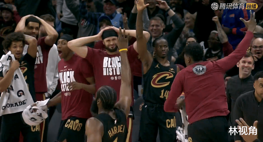 两队稍一纠缠,梅里尔又来了一波个人秀,两记三分外加一个2+1,完全打疯了,以一己之力帮助球队扩大分差,骑士替补席都沸腾了。