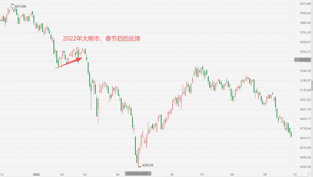 包括2022年,全场暴跌20%以上的大熊市,春节后也是有一波小幅上涨企稳,具体见下图。