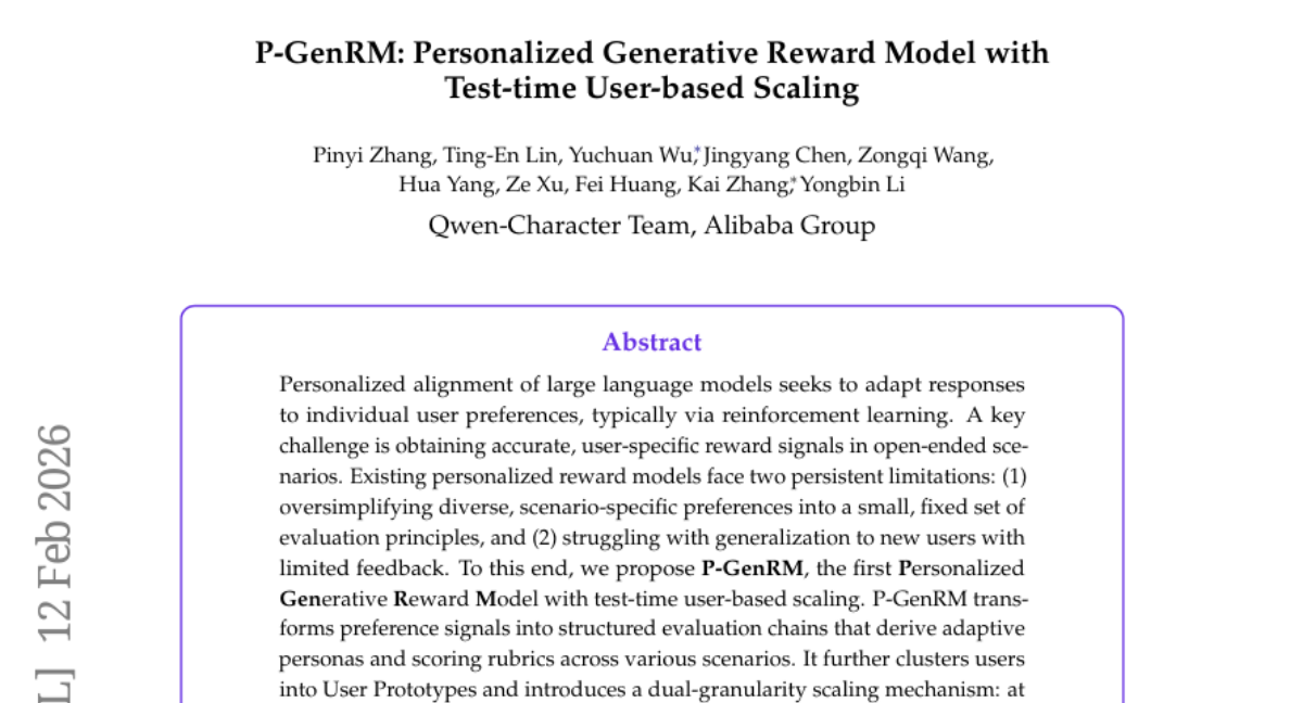 这项由阿里巴巴集团Qwen-Character团队主导的研究发表于2026年2月,论文编号为arXiv:2602.12116v1。该研究在个性化人工智能领域取得了重要突破,提出了全球首个个性化生成式奖励模型P-GenRM,为解决AI系统如何更好地适应不同用户偏好这一关键挑战提供了创新方案。