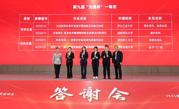 大学最值得称赞的时刻,莫过于站在国家级竞赛领奖台上,让校旗因自己的创新成果而闪耀的瞬间。2025年,第九届“光威杯”中国复合材料学会大学生科技创新竞赛全国总决赛在四川成都落下帷幕,这场汇聚全国近百所高校360余支队伍的顶级赛事中,武汉理工大学材料科学与工程学院“聆息传感”团队脱颖而出。