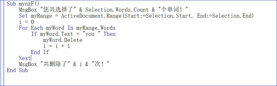 3) For Each myWord In myRange.Words 在所选择区域中的单词集合间建立遍历循环。