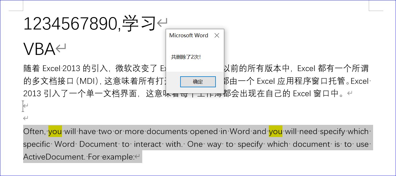 2 如何获得文档选择区域的单词数量及删除某单词?