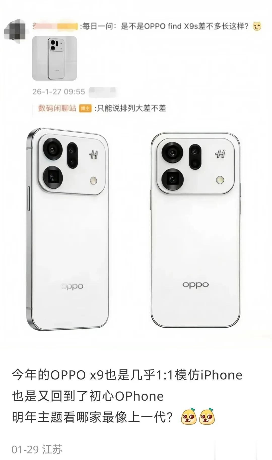 如下所示,这是目前曝光的疑似为OPPO Find X9SPro的渲染图:(基本石锤,反正都是去致敬iPhone,可以理解)