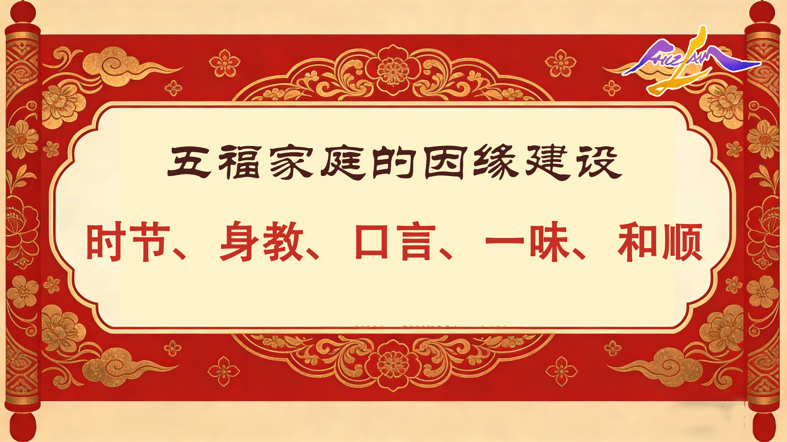 “时节、身教、口言、一味、和顺”,这是五福家庭的因缘建设,我们按照这个做就一定能建设成五福家庭。你知道五福家庭有多大的功德利益吗?