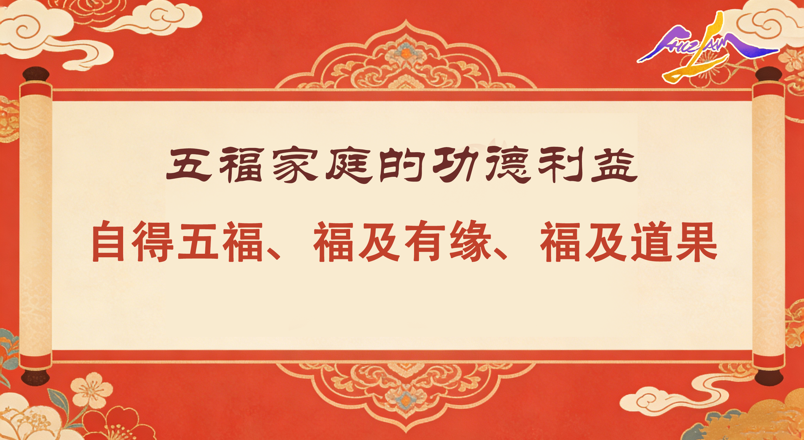 第三、福及道果。五福家庭就是人间的极乐,大家求极乐,在当下建设好家庭就是。天地人三界、十方世界,不及你这个家庭,这就是福及道果。