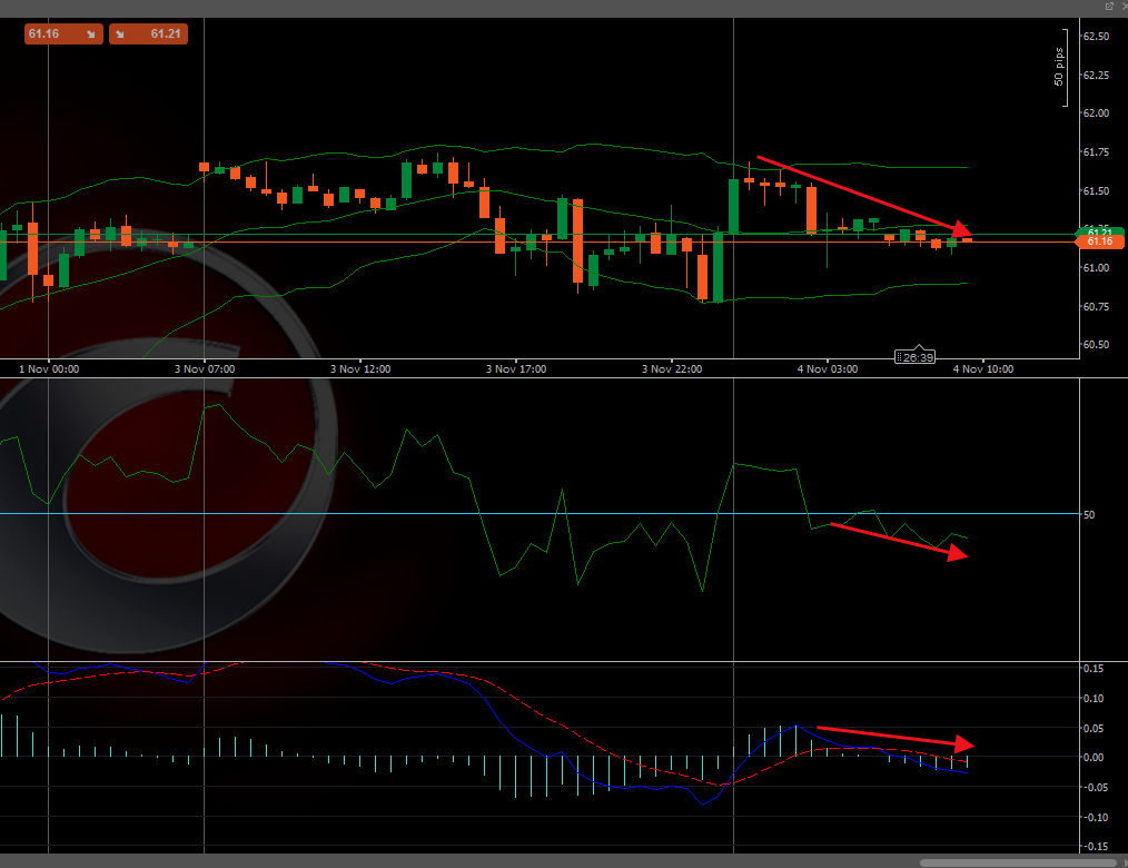 操作建议:上方关注61.7,下方关注61,若破位可看至60.8。