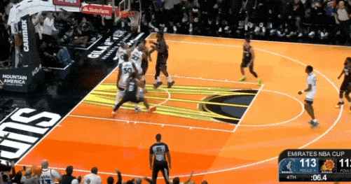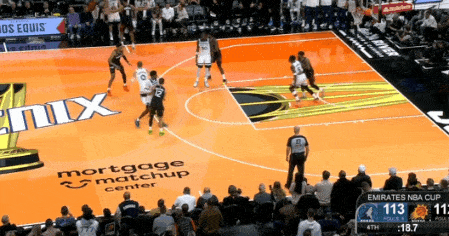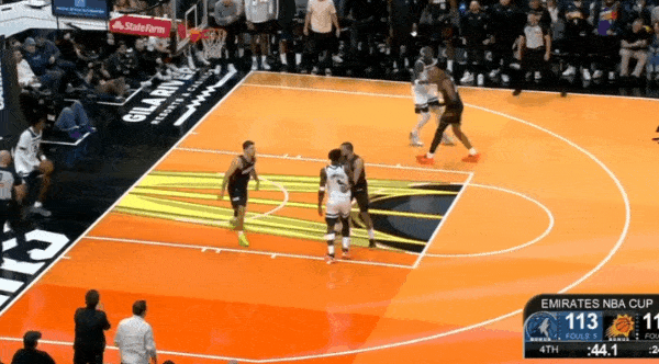 在太阳对阵森林狼的NBA杯比赛中,太阳第四节最后不到1分钟时间落后8分完成大逆转,堪称今日NBA最精彩时刻,那么他们是如何做到?下面跟着镜头来逐帧拆解: