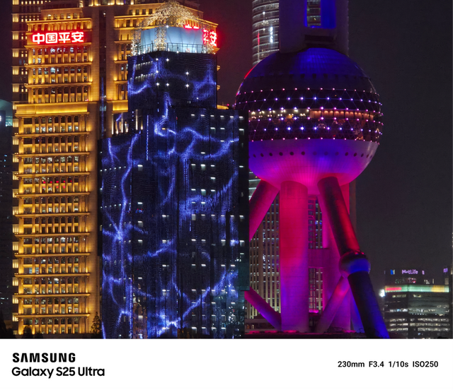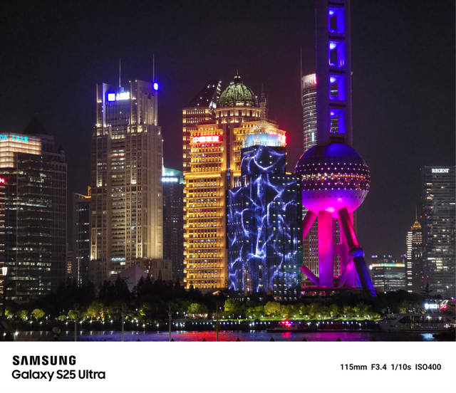 除了远近皆出众的拍摄体验,三星Galaxy S25 Ultra的夜拍实力同样令人惊叹。当镜头处于夜晚或暗光环境拍摄时,增强的AI超视觉引擎能够智能优化色彩与细节,同时双重分析降噪技术结合芯片内置的降噪算法,可对动态物体和静态背景提供精准降噪,有效控制画面暗部噪点,进一步提升成像效果。